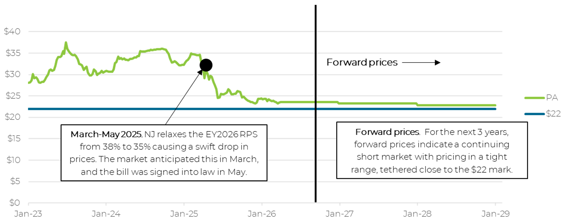 Figure 5. Pennsylvania Tier 1 REC Prices, 2023A-2028E ($/REC)